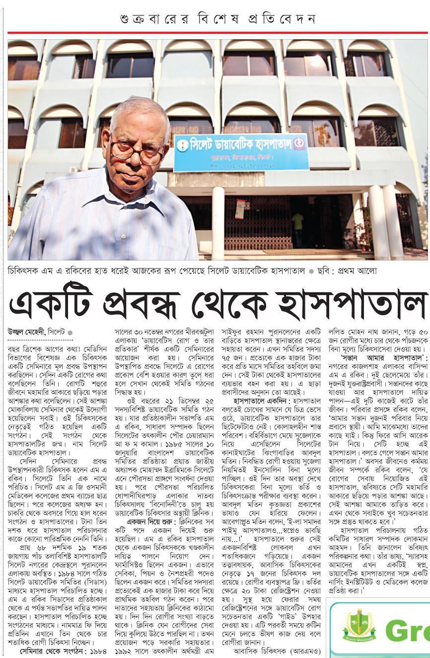Article about Prof. M A Raquib, published on daily ...